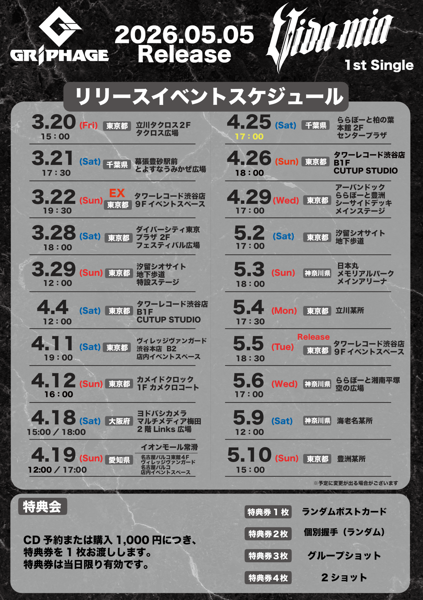 ▼3月20日(金・祝) ミニライブ & 特典会 リリースイベント初日!